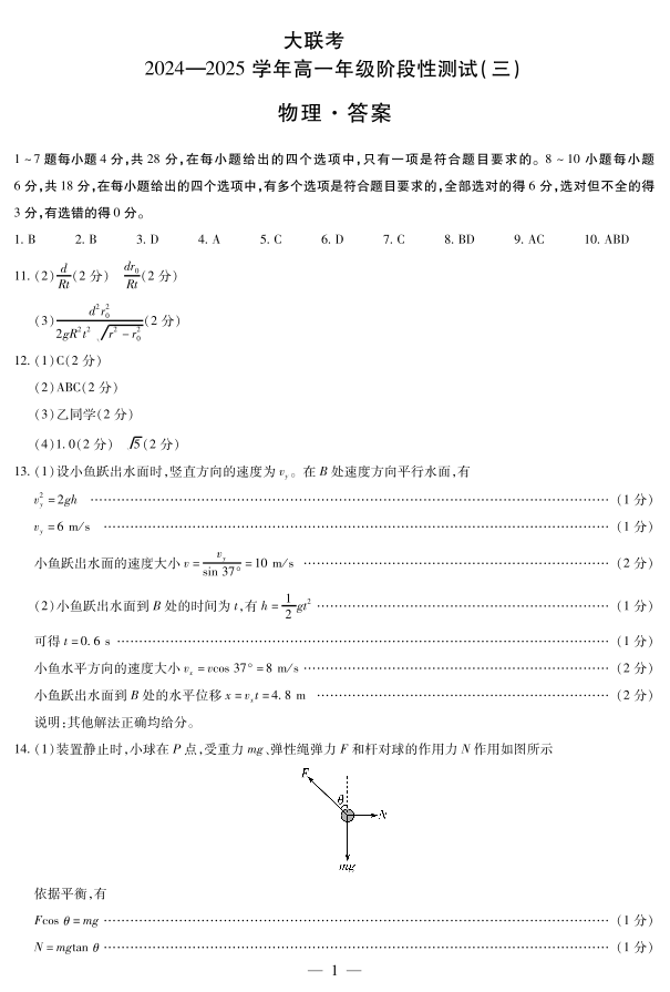 河南省创新发展联盟2024-2025学年高一下学期3月月考 物理答案.pdf