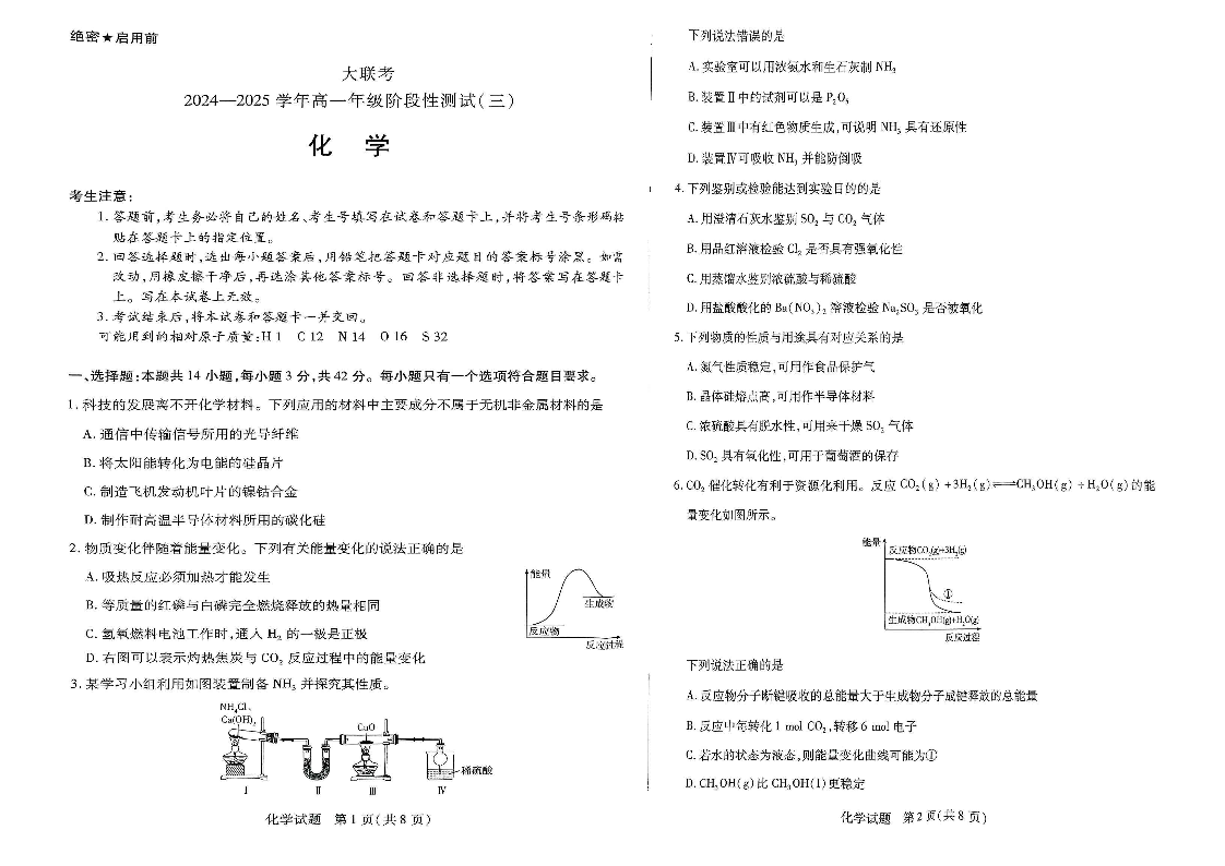 河南省创新发展联盟2024-2025学年高一下学期3月月考 化学.pdf