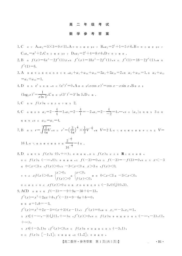 陕西省汉中市部分学校2024-2025学年高二下学期3月月考 数学答案.pdf