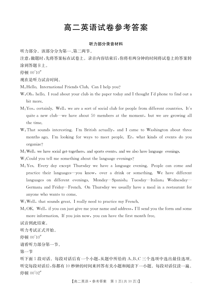江西省2025年3月高二第五次联考 英语答案.pdf