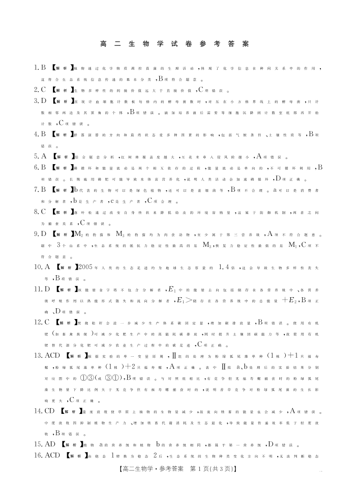 江西省2025年3月高二第五次联考 生物答案.pdf
