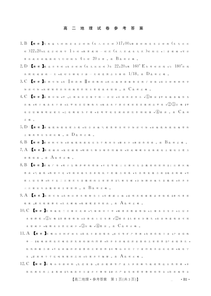 江西省2025年3月高二第五次联考 地理B1答案.pdf