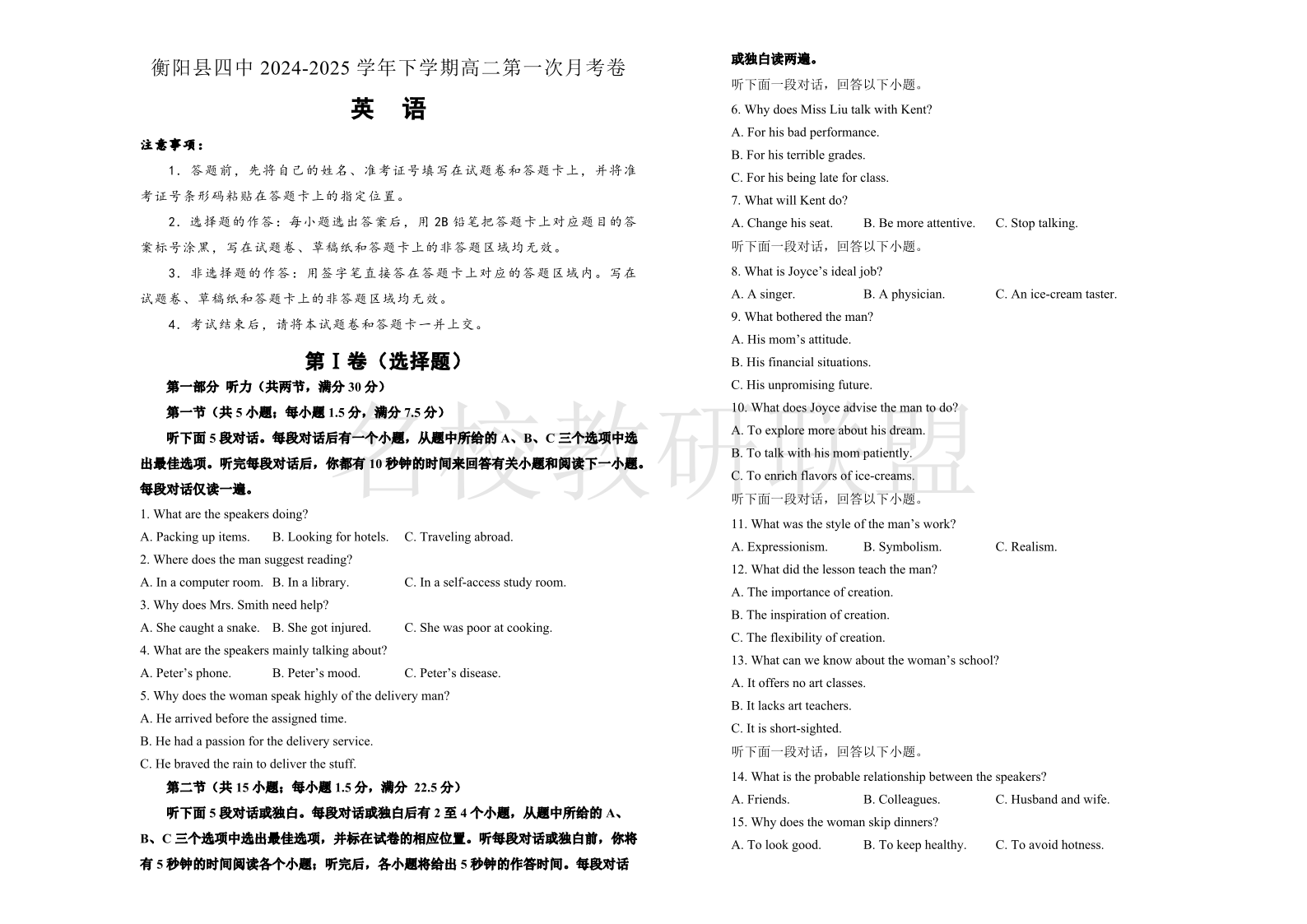 衡阳县四中2024-2025学年下学期高二第一次月考卷 英语(含答案).pdf