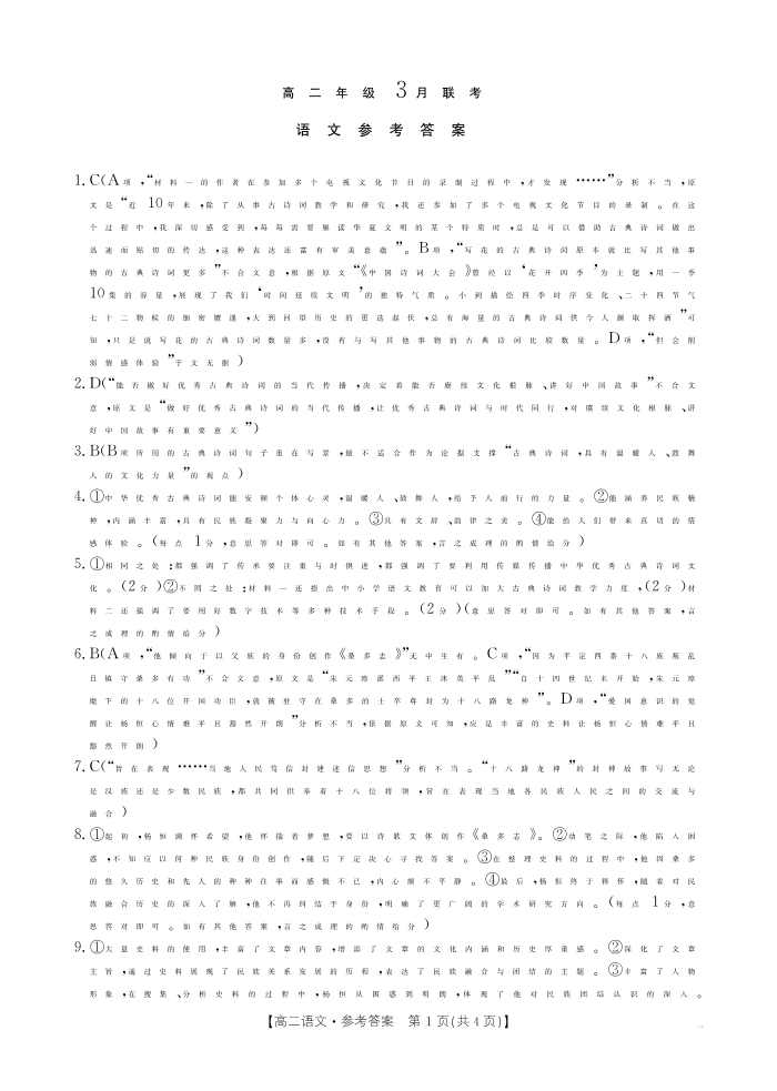 河北省保定市十县一中2024-2025学年高二下学期3月月考 语文答案.pdf