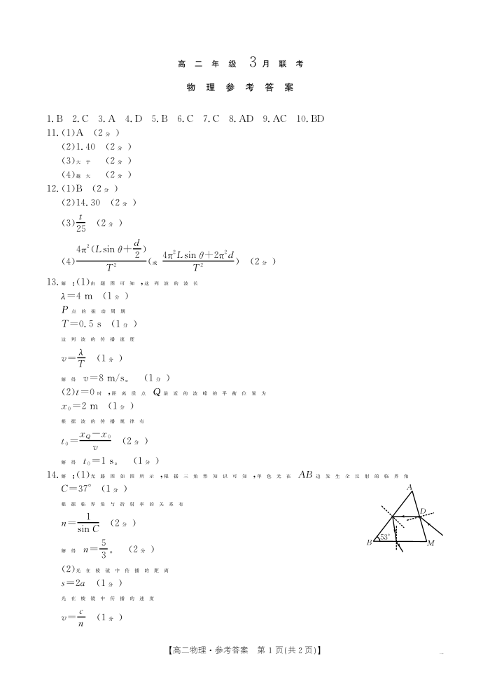 河北省保定市十县一中2024-2025学年高二下学期3月月考 物理答案.pdf