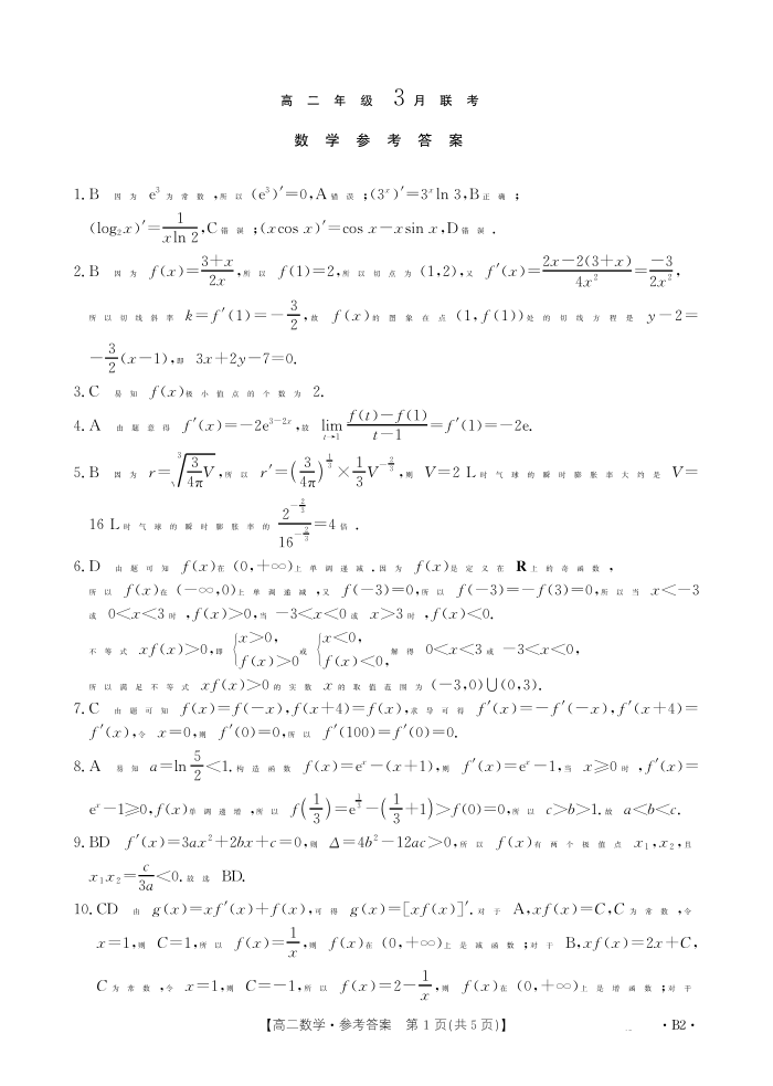 河北省保定市十县一中2024-2025学年高二下学期3月月考 数学答案.pdf