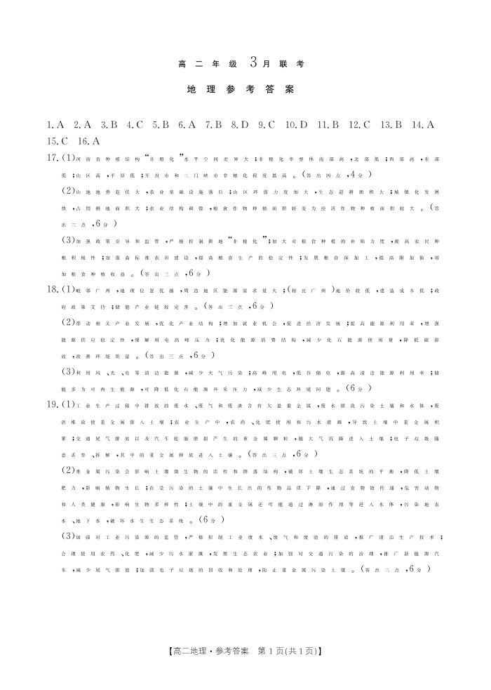 河北省保定市十县一中2024-2025学年高二下学期3月月考 地理答案.pdf