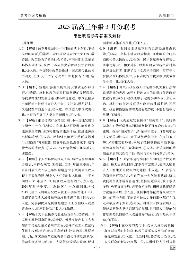 广东省衡水金卷2025届高三年级3月份联考 政治答案.pdf