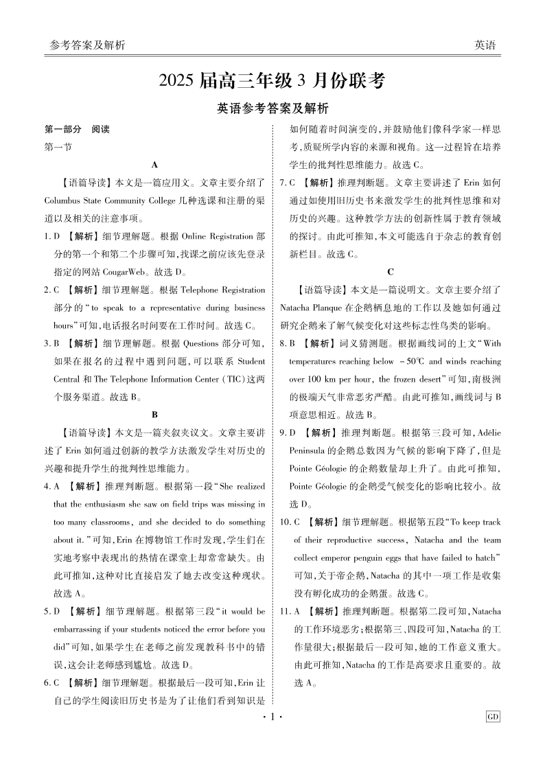 广东省衡水金卷2025届高三年级3月份联考 英语答案.pdf