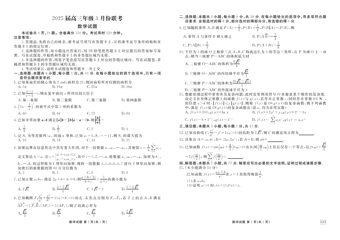 广东省衡水金卷2025届高三年级3月份联考 数学.pdf