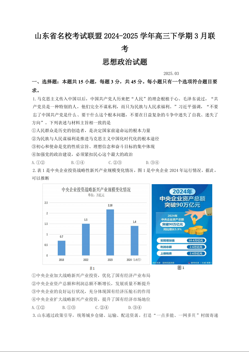 山东名校考试联盟2025年3月高考模拟考试 政治.docx