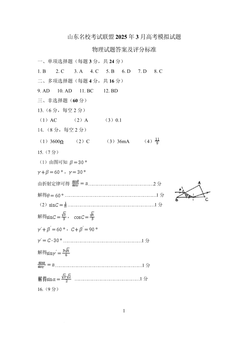 山东名校考试联盟2025年3月高考模拟考试 物理答案.pdf