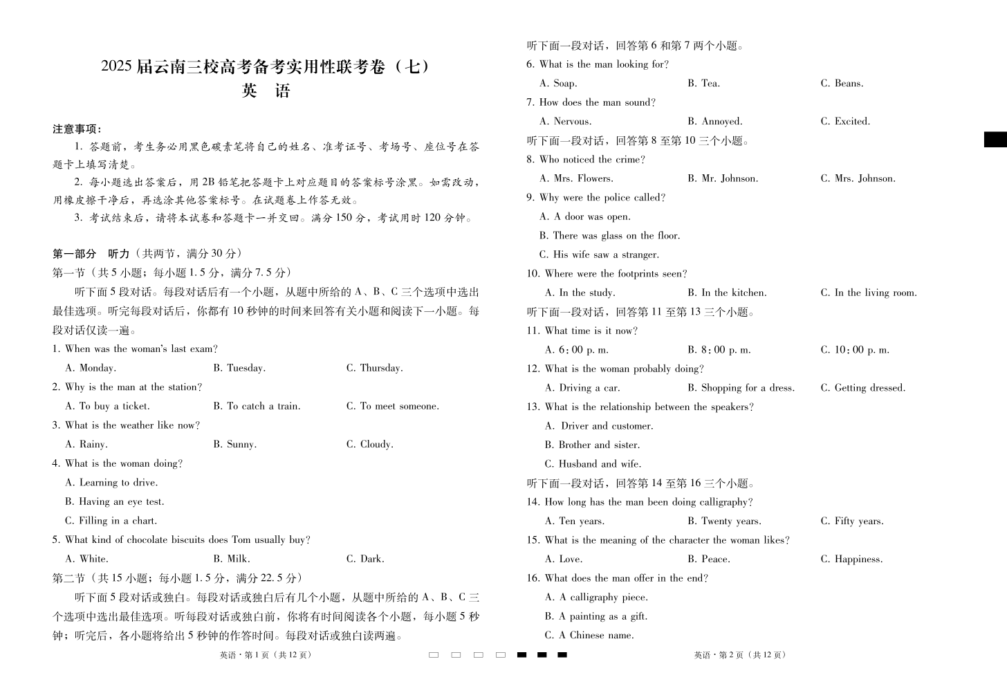 2025届云南三校高考备考实用性联考卷(七)英语.pdf
