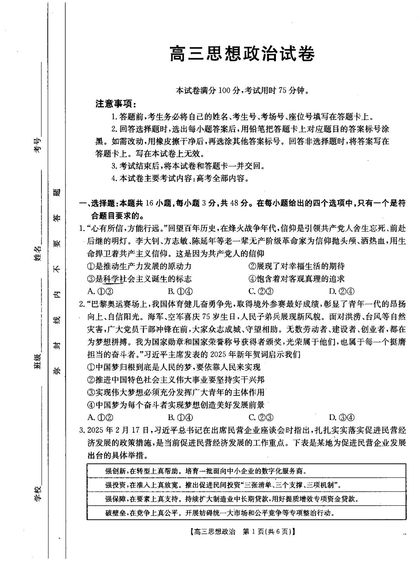 2025届青海省海东市高三下学期二模 政治(含答案).pdf