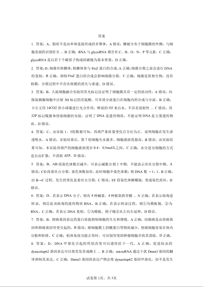 铜仁市2025届高三年级3月模拟考试 生物答案.docx