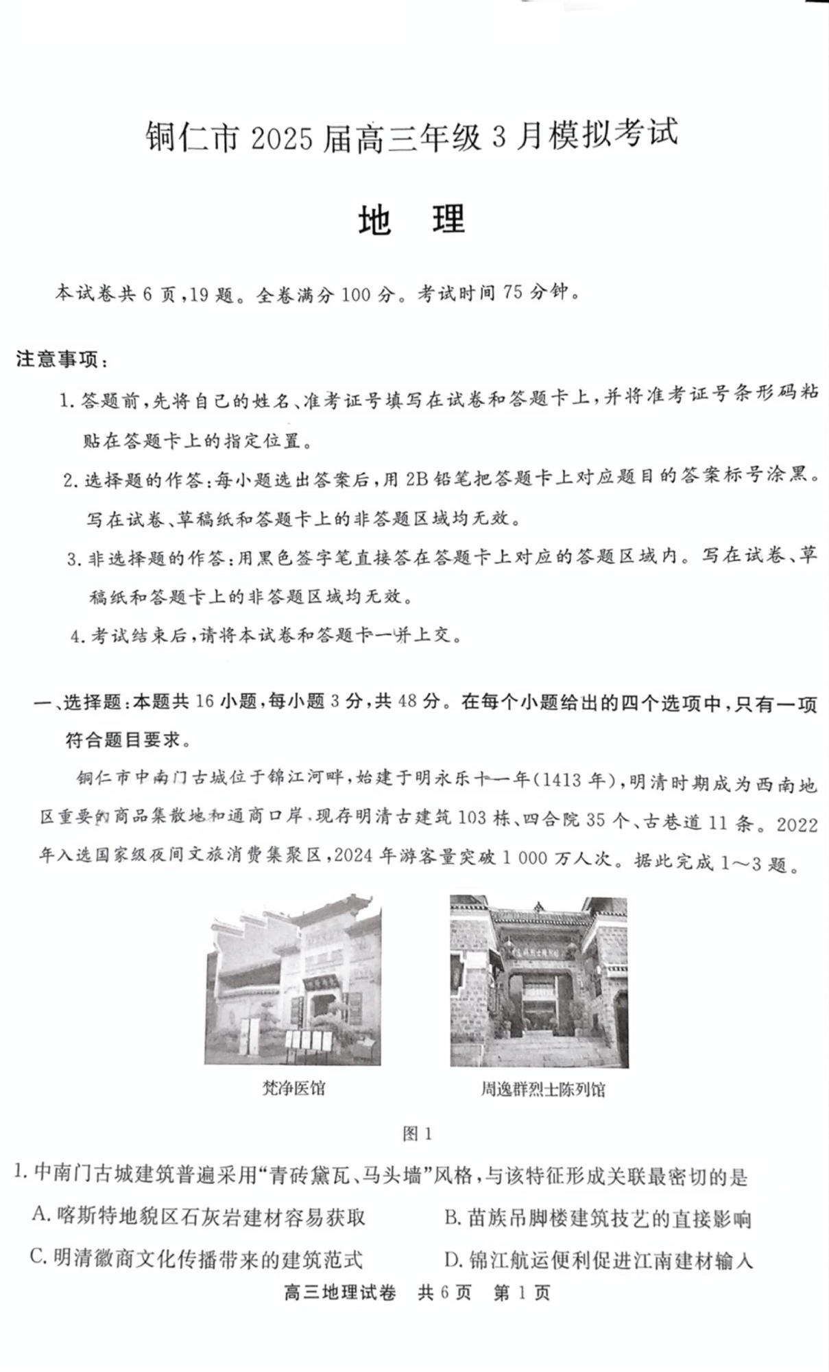 铜仁市2025届高三年级3月模拟考试 地理.pdf