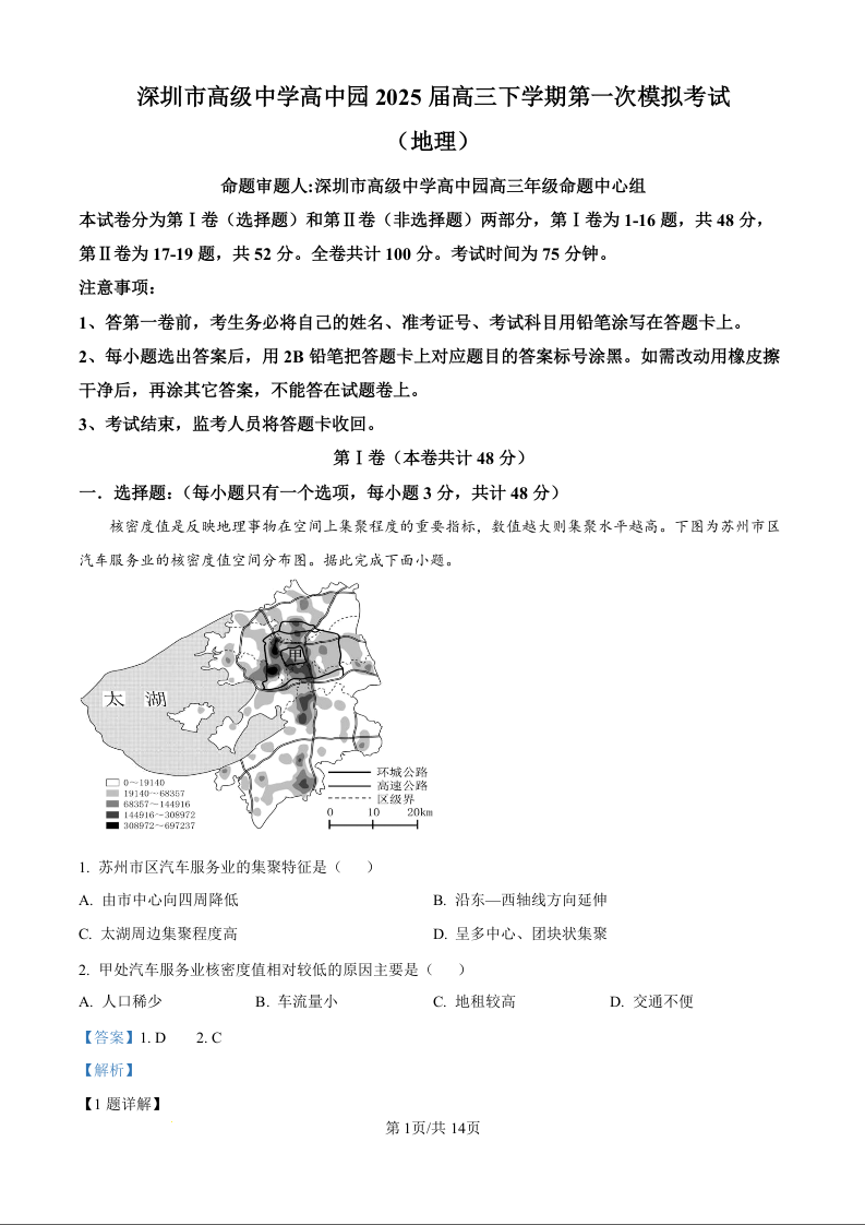 广东省深圳市高级中学高中园2025届高三下学期第一次模拟考试 地理答案.docx