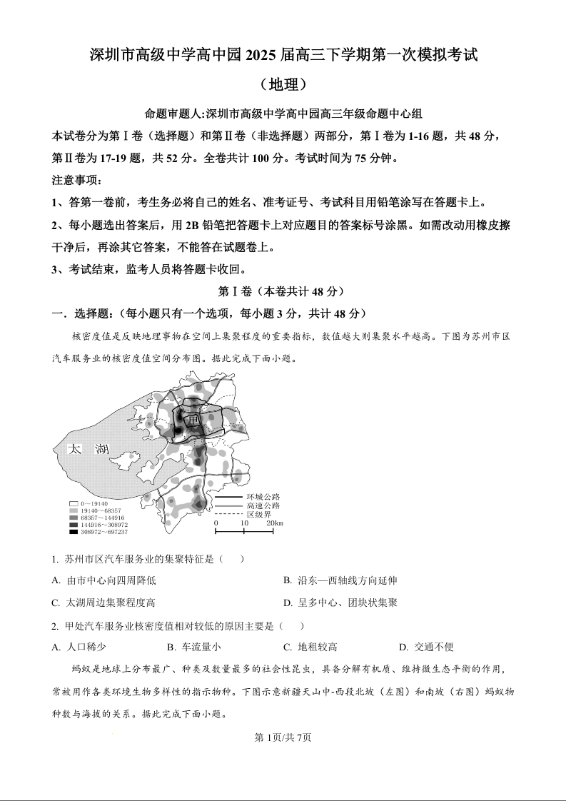 广东省深圳市高级中学高中园2025届高三下学期第一次模拟考试 地理.docx