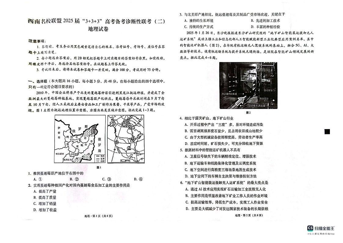 西南名校联盟2025届”3+3+3“高考备考诊断性联考(二)地理(含答案).pdf