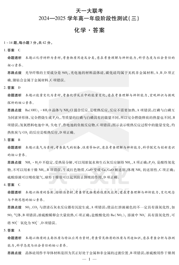 高一三联答案 化学.pdf