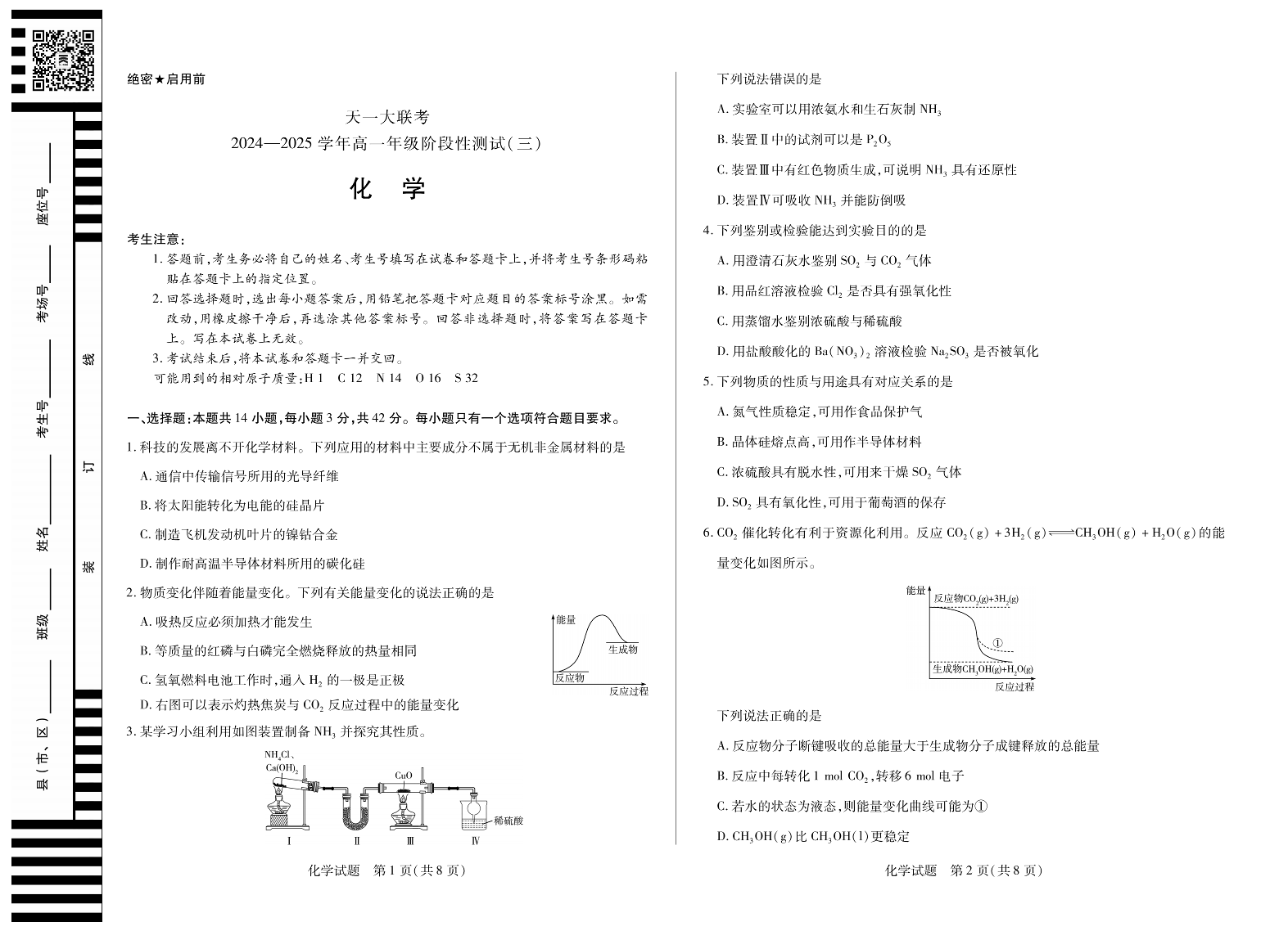 天一大联考·2024-2025学年高一阶段性测试(三)化学.pdf