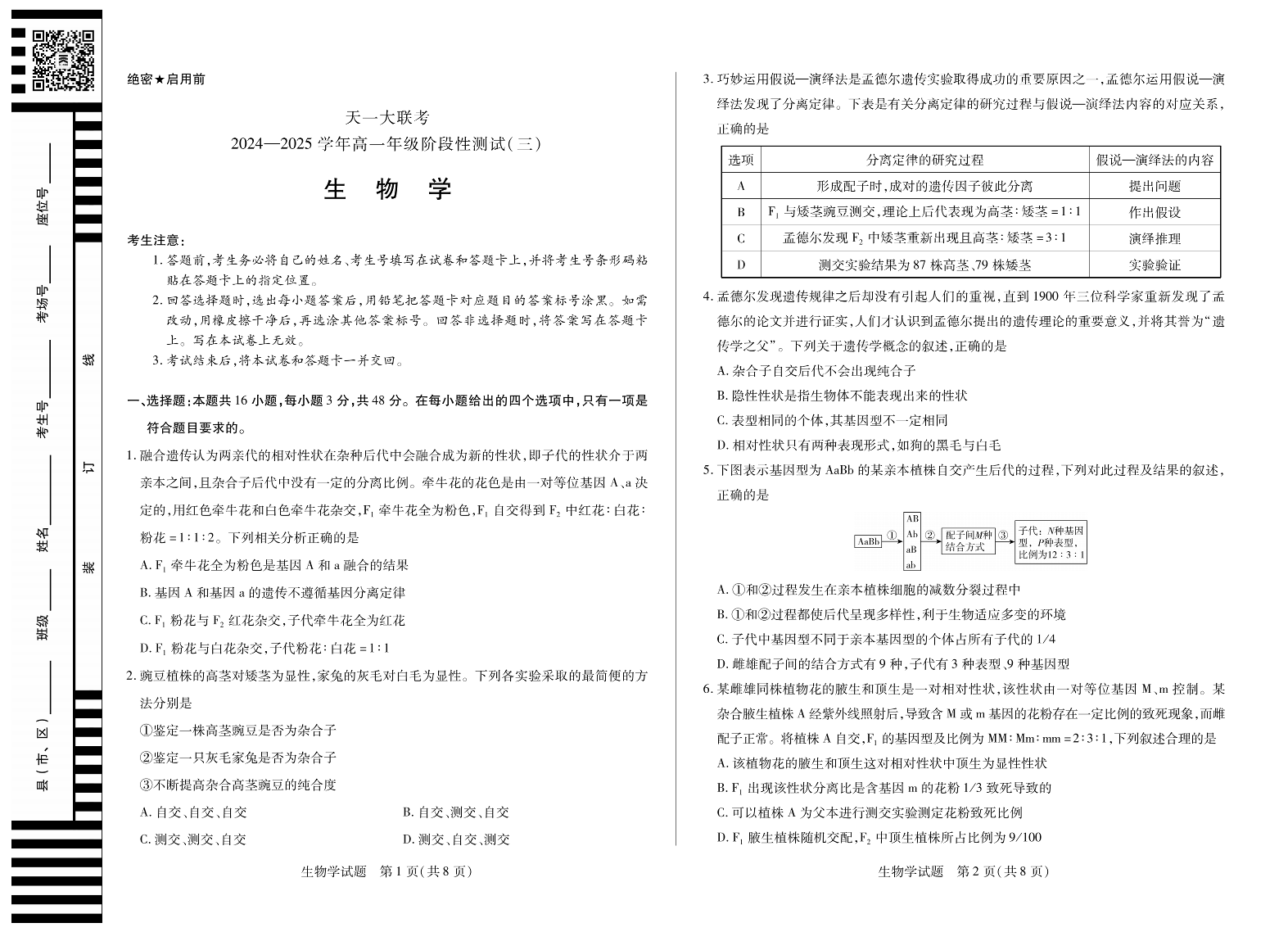 天一大联考·2024-2025学年高一阶段性测试(三)生物.pdf