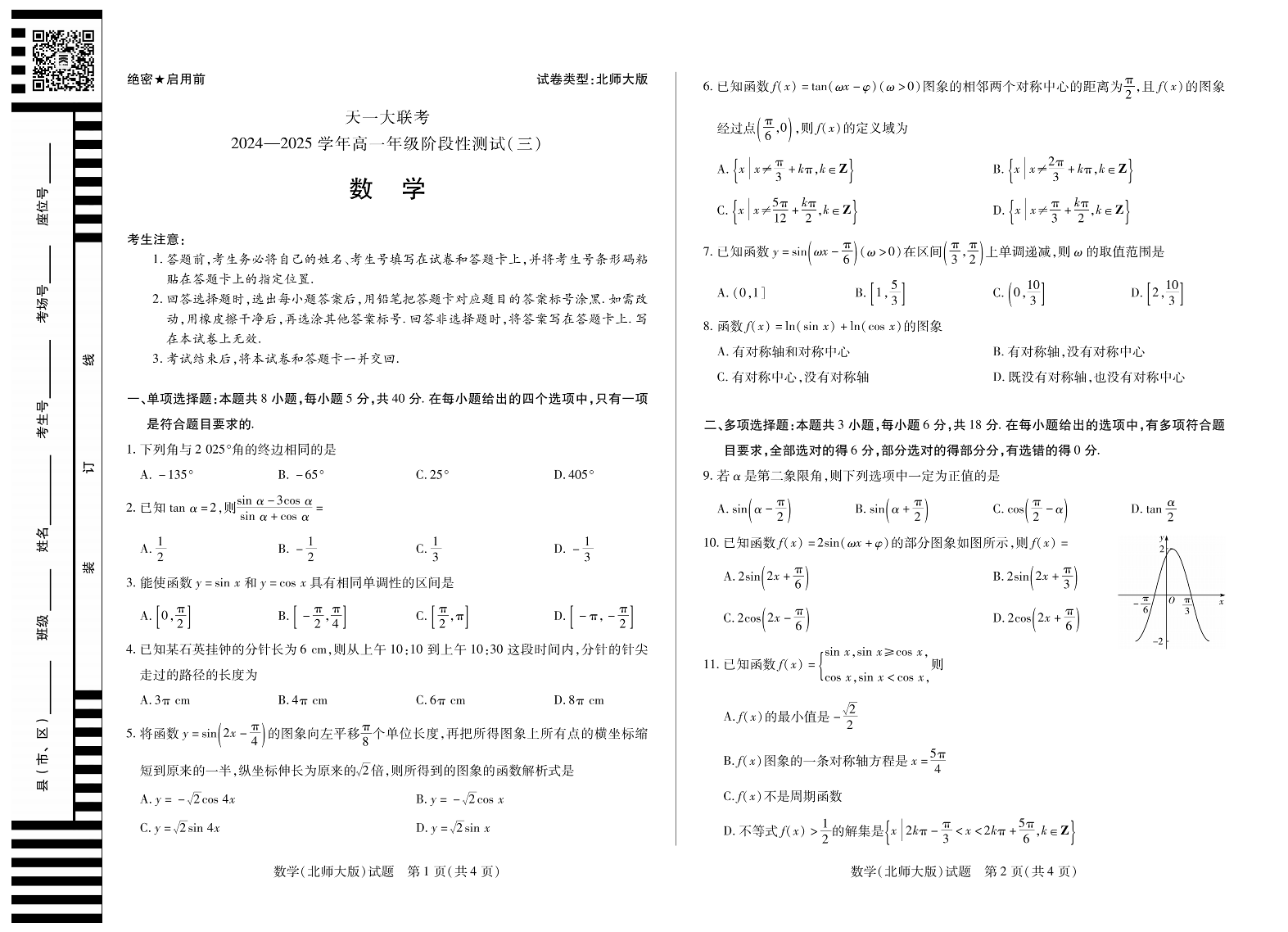 天一大联考·2024-2025学年高一阶段性测试(三)数学北师大版.pdf