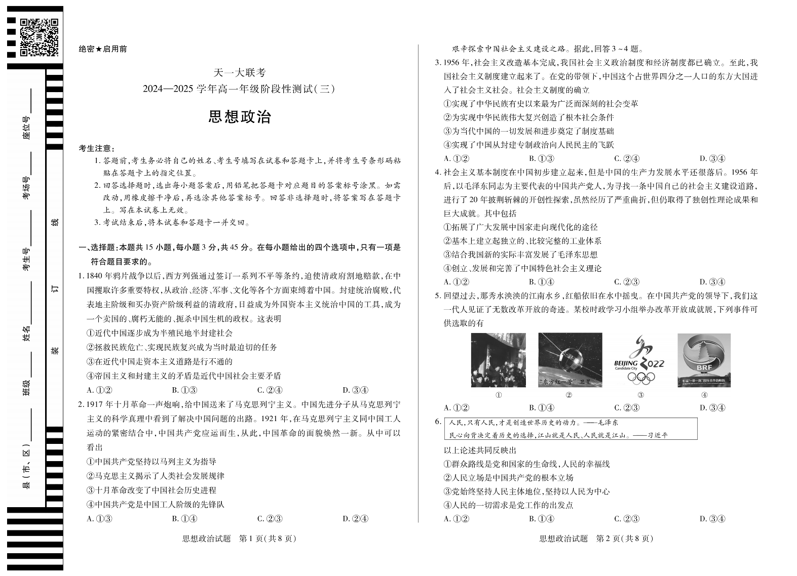 天一大联考·2024-2025学年高一阶段性测试(三)政治.pdf