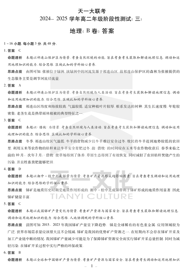高二三联答案 地理B卷.pdf