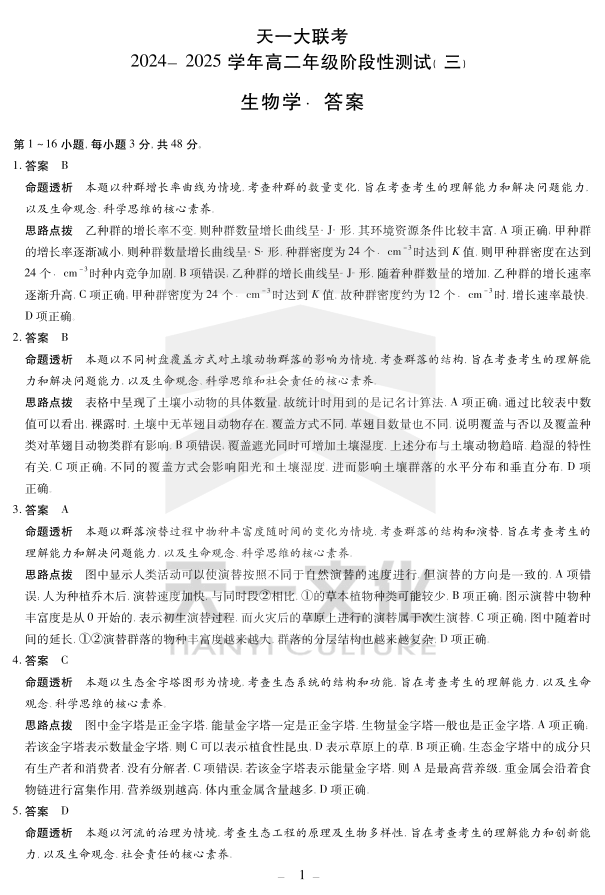 高二三联答案 生物.pdf