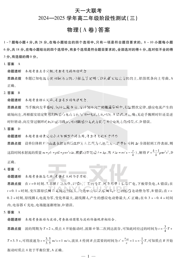 高二三联答案 物理A卷.pdf