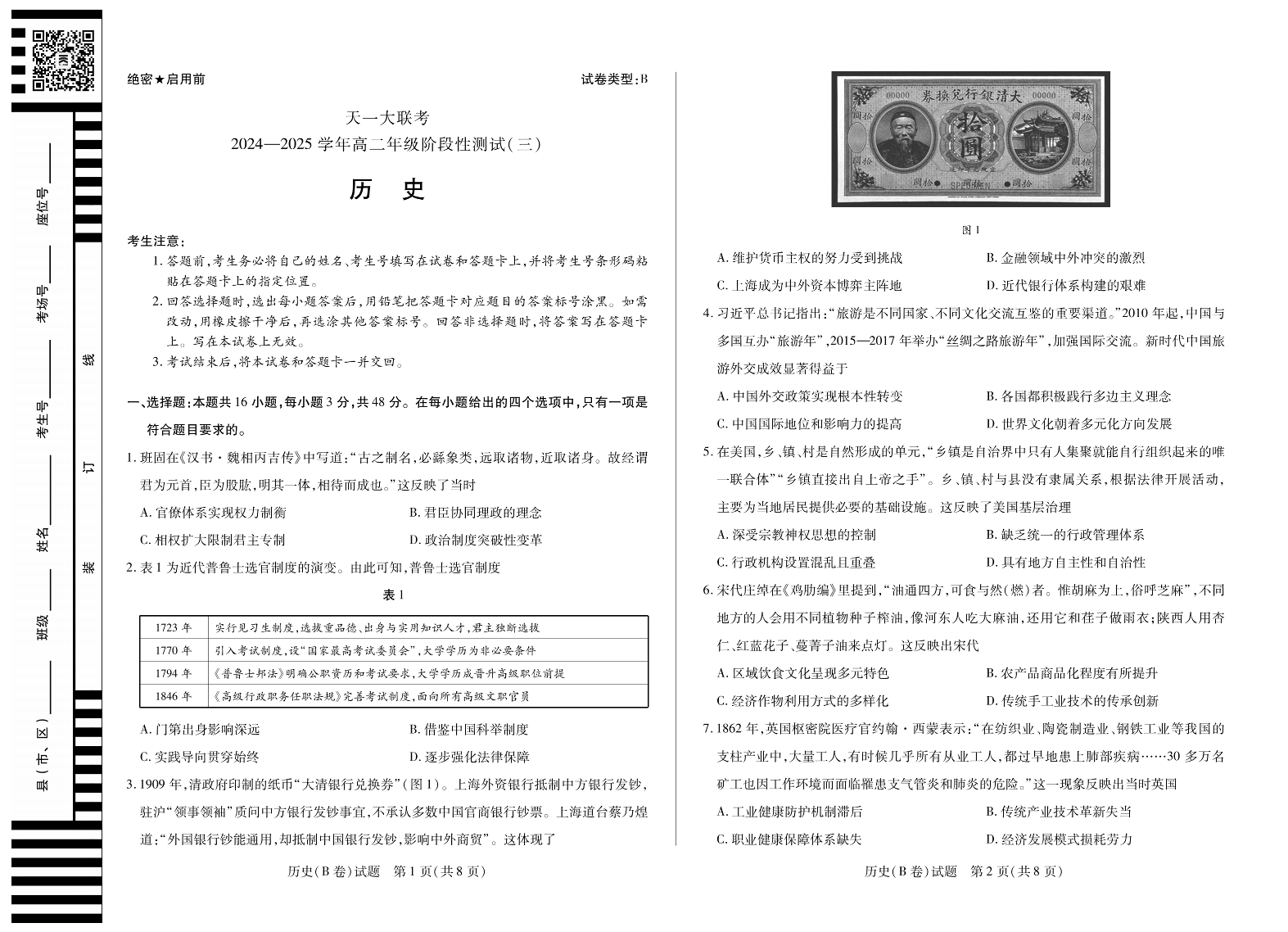 天一大联考·2024-2025学年高二阶段性测试(三)历史B卷.pdf