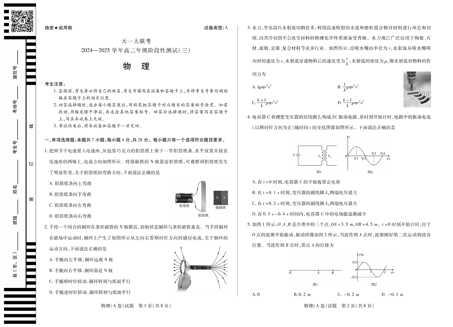 天一大联考·2024-2025学年高二阶段性测试(三)物理A卷.pdf