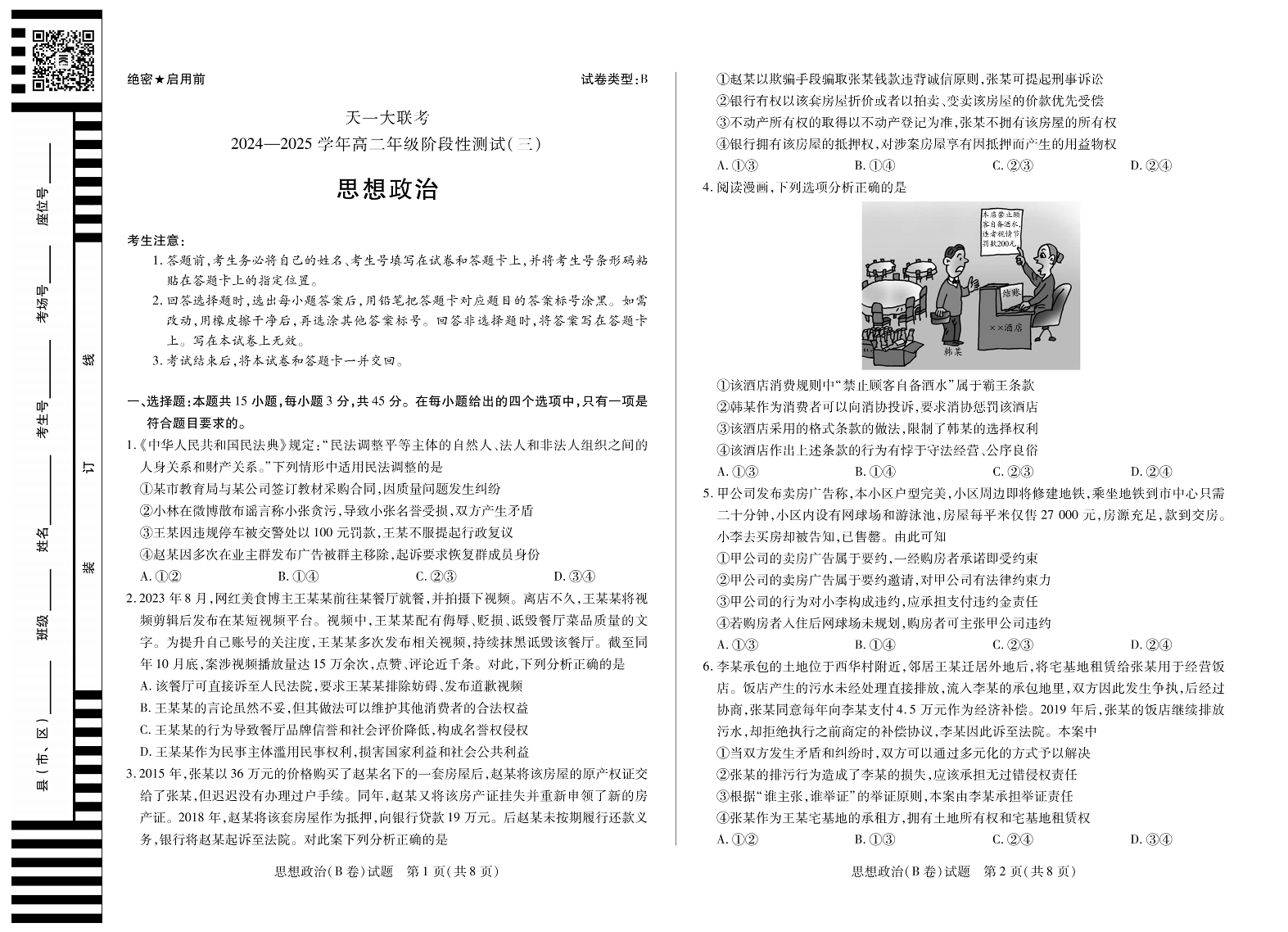 天一大联考·2024-2025学年高二阶段性测试(三)政治B卷.pdf