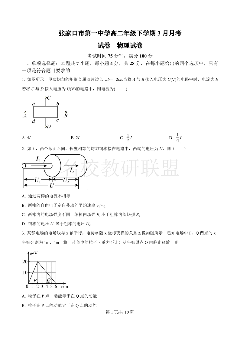 河北省张家口市第一中学2024-2025学年高二下学期3月月考试题 物理(含答案).pdf