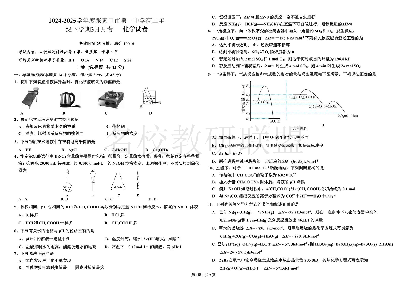 河北省张家口市第一中学2024-2025学年高二下学期3月月考试题 化学(含答案).pdf