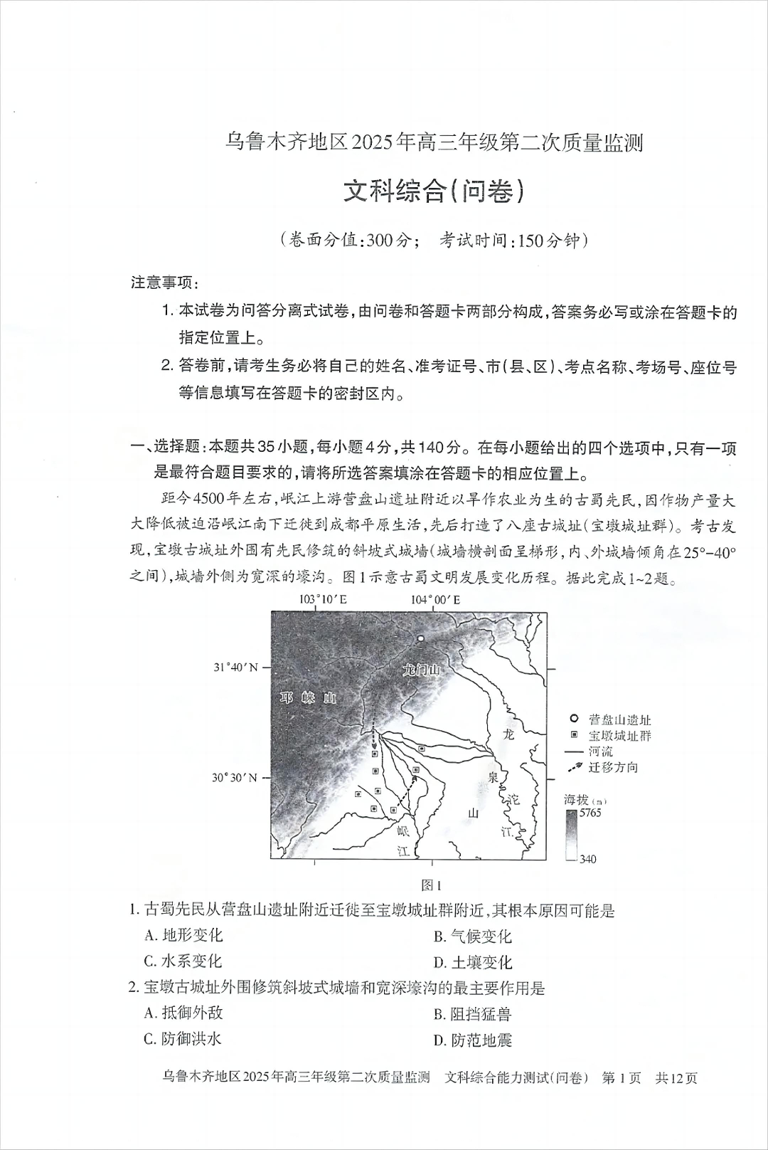 乌鲁木齐地区2025年高三年级第二次质量监测 文综.pdf