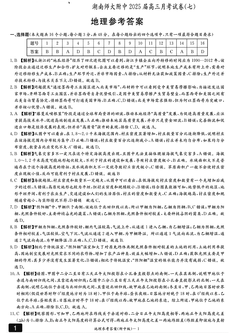 湖南师范大学附属中学2025届高三月考试卷(七)地理参考答案.pdf