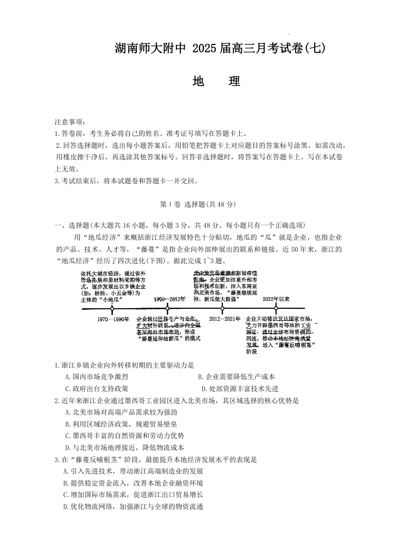 湖南师范大学附属中学2025届高三月考试卷(七)地理.docx