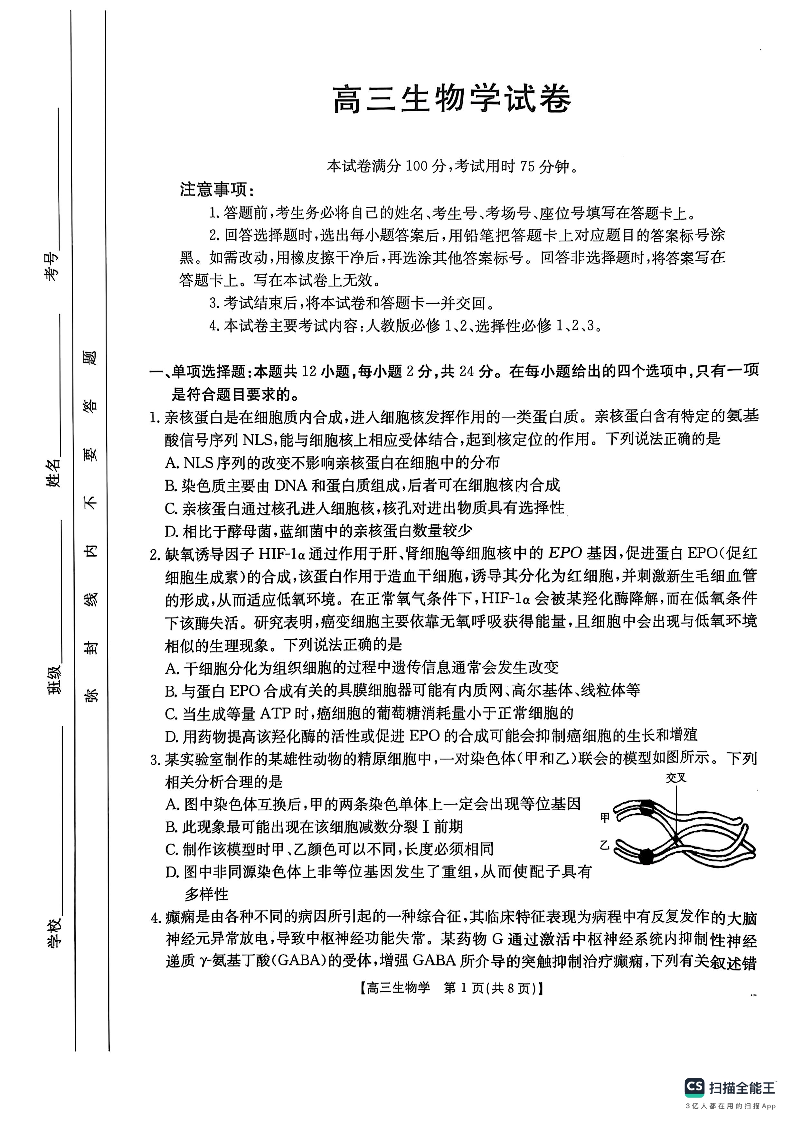 江西省2025届三新教研共同体高三下学期3月联考 生物.pdf