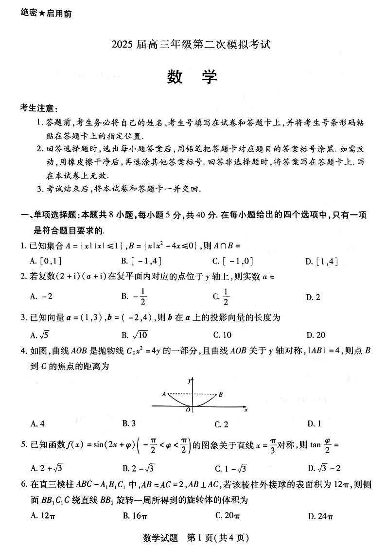 安阳、鹤壁、焦作、濮阳2025届高三第二次模拟考试 数学(含答案).pdf
