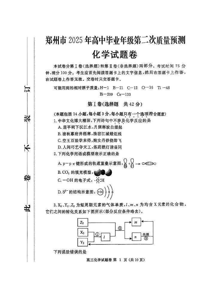 郑州市2025年高中毕业年级第二次质量预测 化学.pdf