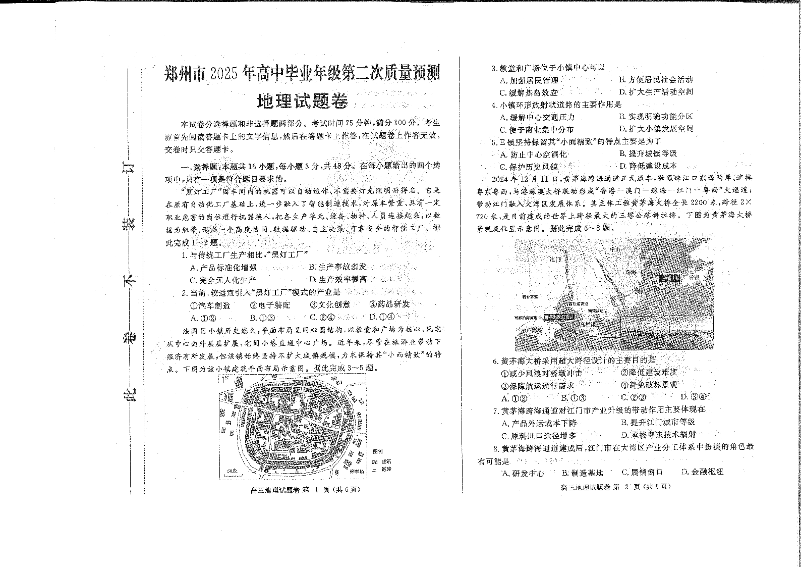 郑州市2025年高中毕业年级第二次质量预测 地理.pdf