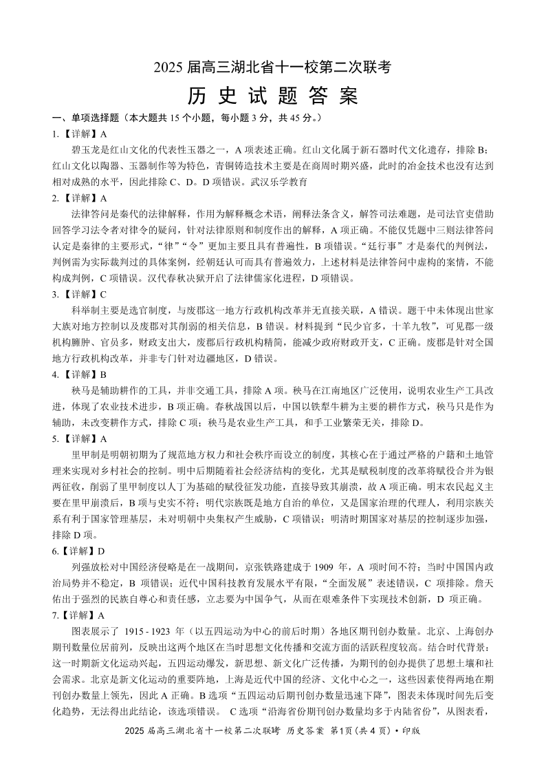 湖北十一校第二次联考 历史答案.pdf