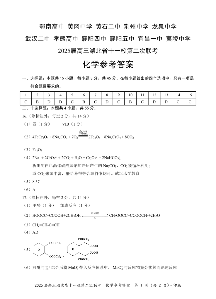 湖北十一校第二次联考 化学答案.pdf