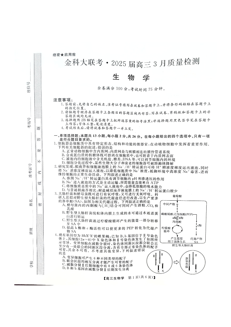 生物-金科大联考2025届高三3月质量检测.pdf