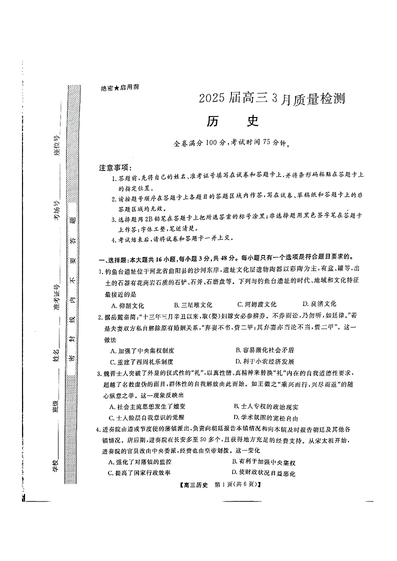 历史-金科大联考2025届高三3月质量检测.pdf