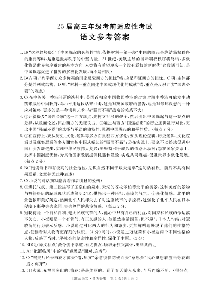 安徽省六安市市区2025届高三年级考前适应性考试 语文答案.pdf