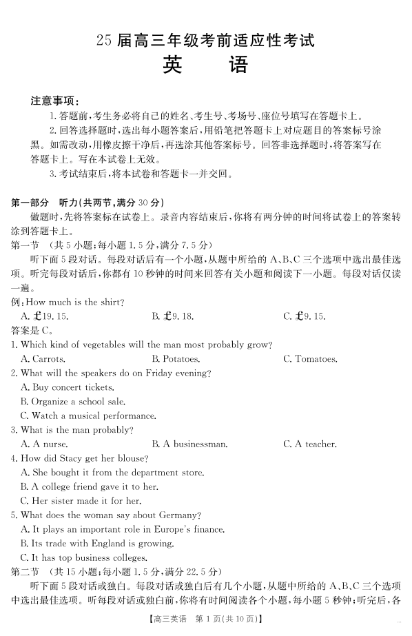 安徽省六安市市区2025届高三年级考前适应性考试 英语.pdf