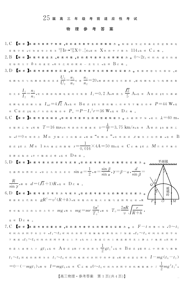 安徽省六安市市区2025届高三年级考前适应性考试 物理答案.pdf